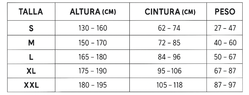 👉 Si dudas entre dos tallas, te recomendamos elegir la más grande para un ajuste más cómodo y preciso.